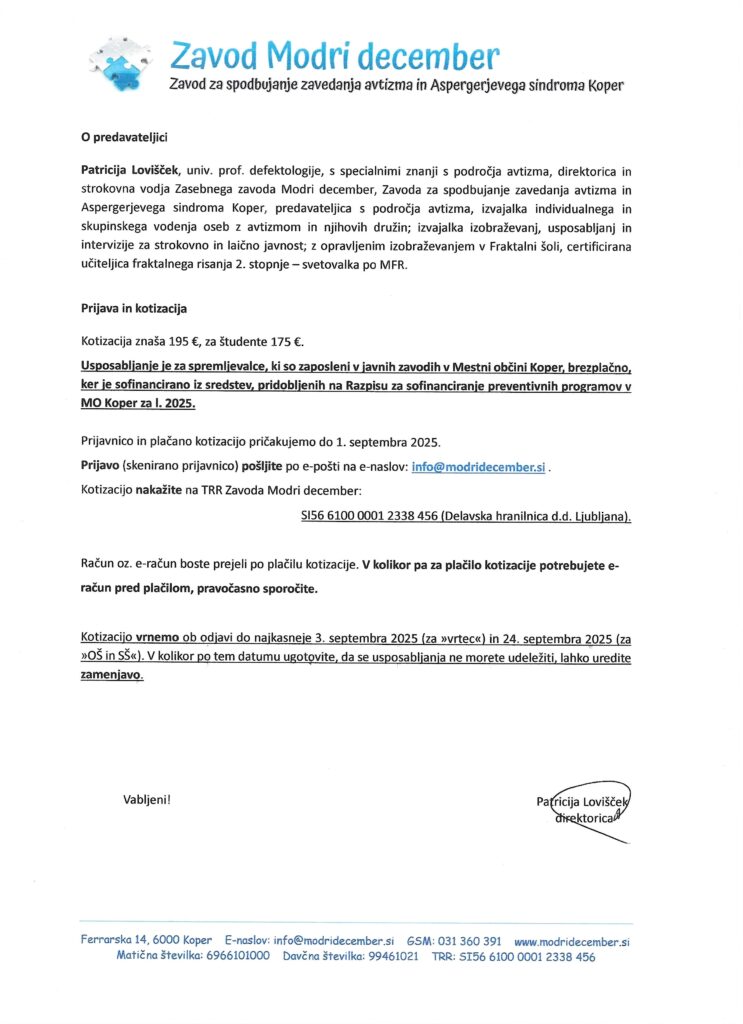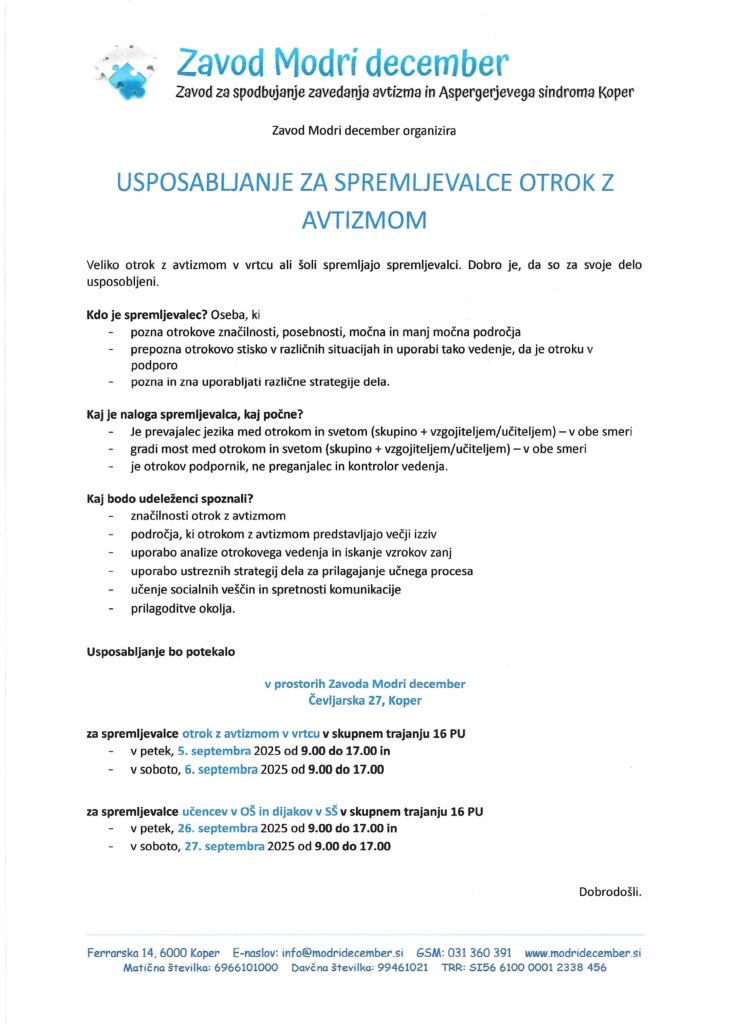 Skupaj lahko ustvarimo delovna mesta, kjer avtistični posamezniki pokažejo, da znajo, zmorejo in želijo delati. Več o vsebini projekta izveste na povezavi: KLIK.